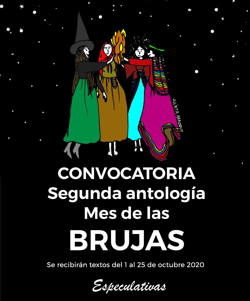 Estará a cargo del equipo editorial de Especulativas y serán publicados en esta página en la sección de «Antologías/02 Brujas», así como serán replicadas en nuestras redes sociales durante el mes.