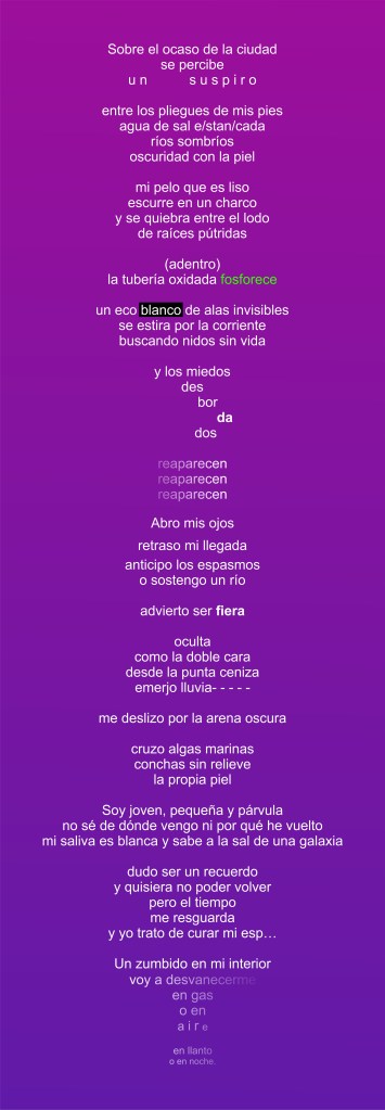 Nicte-Há Ziüg (marzo, 1996) Soy mujer poeta de piel morena. Habitanta silvestre del contorno de un cerro en la orilla oriente. Creo desde la autonomía, el acompañamiento feminista y la voz colectiva de mis genealogías. En los últimos años me hice de palabras para nombrarme: sueños paralelos, tristezas exiliadas y furia punzante. Me dedico, sobre todo, a mí y a las que intuyo a lado, habitando entre los bordes y cruces territoriales de esa otra —nuestra— vida.