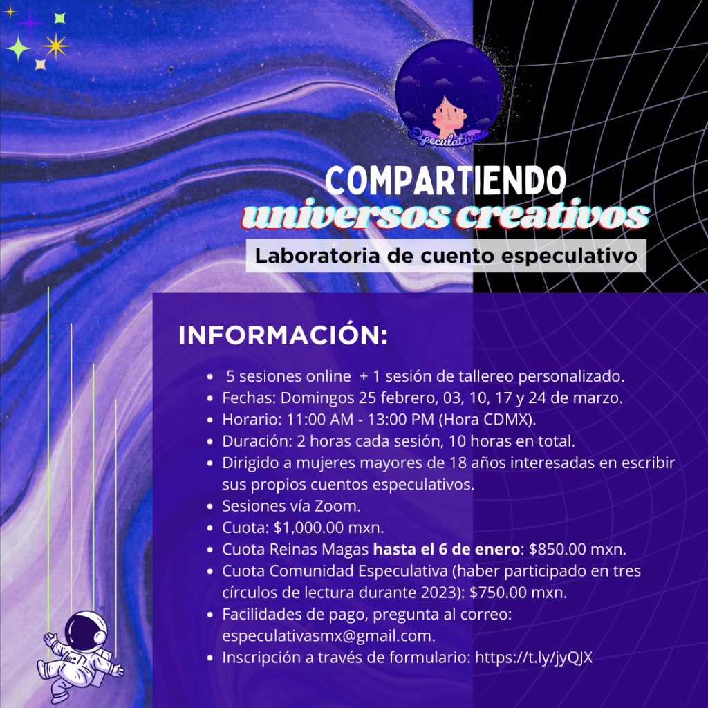 Queremos compartir con ustedes nuestra fascinación por el cuento en nuestros géneros favoritos. y por eso hoy les compartimos nuestra primera “Laboratoria de cuento especulativo”.