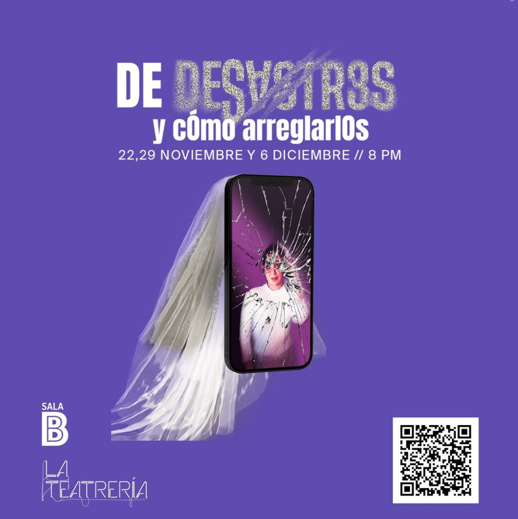 ¿Quién dijo que la ciencia ficción sólo se trata de avistamientos extraterrestres? La obra “De desastres y cómo arreglarlos”, escrita por Splash Morales y Mara Jiménez, quienes también toman el rol de actriz principal y directora de la obra respectivamente, nos trae esta puesta en escena obra de ciencia ficción que invita a la reflexión de cómo nos relacionamos con la tecnología.